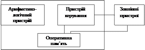 Склад комп'ютера за принципом фон Неймана показаний на рис. 1.1.