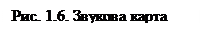 Звукова карта (рис. 1.6) стала одним з найбільш пізніх удосконалень ПК. Вона підключається до одного зі слотів материнської плати у вигляді дочірньої карти і виконує обчислювальні операції, пов'язані з обробкою звуку, мови, музики. Звук відтворюється через зовнішні звукові стовпчики, що підключаються до виходу звукової карти. Спеціальний розйом дозволяє відправити звуковий сигнал на зовнішній підсилювач. Існує також розйом для підключення мікрофона, що дозволяє записувати мову або музику і зберігати їх на жорсткому диску для наступної обробки і використання.