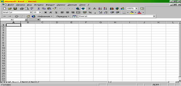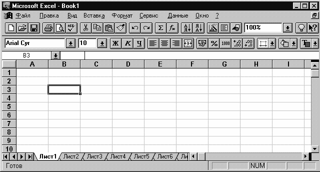 Існують кілька варіантів Microsoft Excel для Windows, подальший матеріал орієнтований на русифіковану версію 8.0. Для запуску програми Excel слід виконати команду Пуск/Програми/Місгоsoft Excel Windows-95, після чого на екрані з'явиться вікно процесора Excel.