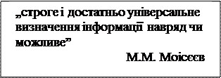З однієї сторони ми вже з вами знаємо, що існує багато визначень поняття інформація, різні наукові дисципліни вводять це поняття по–різному. Хотілося б з численної кількості існуючих тлумачень поняття інформації, навести визначення, яке б відображало все різноманіття даного поняття, внутрішню складність і протиріччя самого феномену інформації. З іншої сторони, пам’ятаємо що академік М. М.Моісєєв писав: „строге і достатньо універсальне визначення інформації навряд чи можливе”.