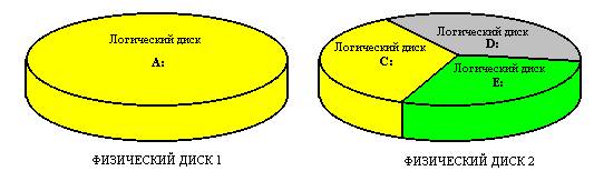 Комп'ютер працює з кожним логічним диском як з окремим пристроєм, хоча насправді він може бути лише частиною реального (фізичного) диска і навіть частиною оперативної пам'яті:
