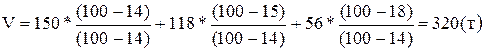 всего сдано зерна 324 т, причем с влажностью 18% - 56 т, с влажностью 15% - 118 т, с влажностью 14% - 150 т.