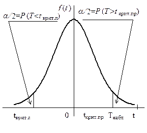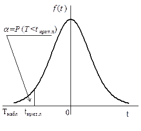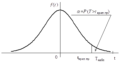 Т<t крит. л(a, k) или Т>t крит. пр (a, k), которая строится, исходя из требования