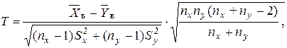 Итак, если проверка показала, что генеральные дисперсии равны, то находим наблюдаемое значение критерия по данным выборок: