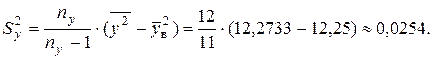 Для проверки нулевой гипотезы сделаны выборки объемами nx = 10 и ny = 12. По выборочным данным найдем точечные оценки параметров данных распределений. Расчеты приведем в таблице: