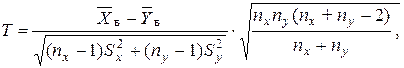 Можно показать, что эта случайная величина имеет распределение Стьюдента с k = nx + ny - 2 степенями свободы.