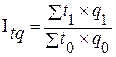 Индекс физического объема. Он характеризует влияние изменения физического объема продаваемых товаров на общее изменение трудоемкости. В нем будет изменяться физический объем, а затраты труда на единицу продукции фиксируются на уровне базисного периода. Данный индекс показывает во сколько раз изменится трудоемкость за счет изменения физического объема производимой продукции.