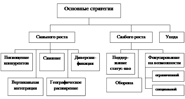 Типология стратегий, разработанная Н. Н. Треневым, основана на специфике ростаорганизации и заключается в следующем (рисунок):