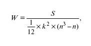 где S – сумма квадратов отклонений суммы рангов для каждого объекта от средней суммы рангов: