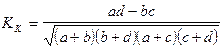 Для исследования взаимосвязи качественных альтернативных признаков, принимающих только 2 взаимоисключающих значения, используется коэффициент ассоциации и контингенции. При расчете этих коэффициентов составляется т.н. таблица 4-х камней, а сами коэффициенты рассчитываются по формуле: