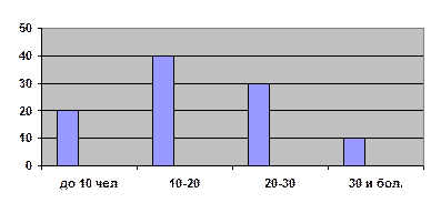 Интервальный ряд распределения графически изображается в виде гистограммы. На рис.7 представлено распределение интервального ряда числа туристов в группах.