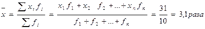 Если туристов объединить в группы по числу туров, то их среднее значение можно подсчитать как среднюю арифметическую взвешенную (табл.3):