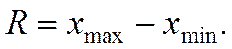 Размах колебаний, или размах вариации, представляет собой разность между максимальным и минимальным значениями признака в изучаемой совокупности: