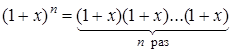 . Раскроем скобки и приведем подобные: в полученном многочлене коэффициент при степени xi равен сумме i единиц и n -i нулей. Число всевозможных выборов i единиц из общего числа выборов n равно