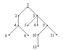1 - 2 - 3 - 4 -3- 5 -3-2-1- 6 -7-6- 8 -6- 9 - 10 - 11 -10-9- 12 -9-6-1.