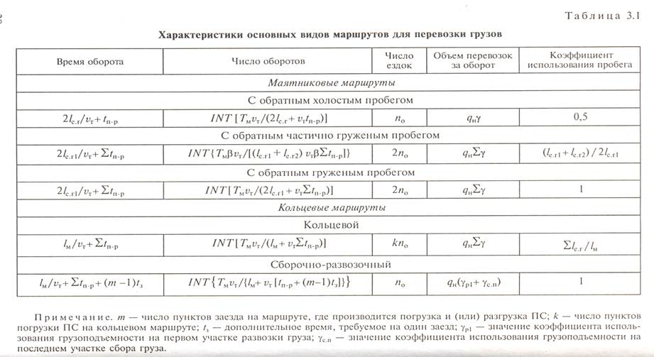 Характеристики основных видов маршрутов приведены в табл. 3.1.