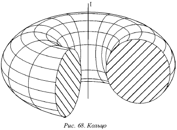 Когда ось вращения не пересекает окружность (рис. 68), то полученную в этом случае поверхность обычно называются кольцом (или кольцевой поверхностью).