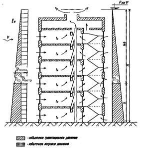 Рис.10. Формирование воздушных потоков в многоэтажном здании с естественной вентиляцией