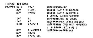 Для обеспечения немерцающей и яркой индикации обращение к процедуре COLUMN должно осуществляться через каждые 50/5 = 10 мс.