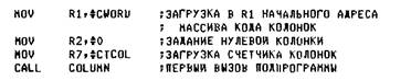 Задание исходного значения содержимого счетчика колонок символическим именем CTCOL позволяет использовать подпрограмму COLUMN для реализации процедуры динамической индикации группы символов на линейном дисплее. Символическое имя CTCOL должно быть определено директивой ассемблера. Например, для МСИ 5x7