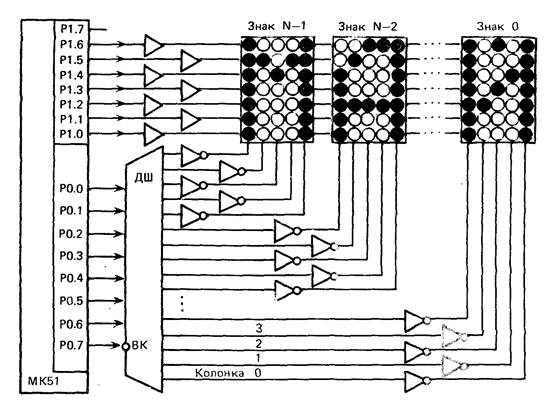 Рис. 7.10. Линейный дисплей на матричных индикаторах