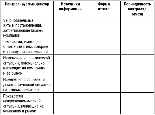 Начиная сбор информации, не пренебрегайте отраслевыми обзорами и аналитическими статьями, которые вам удастся найти. Хотя именно в аналитических обзорах различных авторов вы можете столкнуться с разной оценкой ситуации. Скажем, когда автор собирал информацию о рынке лакокрасочных материалов, на котором стал работать только с переходом в «Невские краски», то оказалось, что в разных статьях оценки объема производства в отрасли отличались на 20–30 %, впрочем как и объемы потребления. Но это не значит, что их нельзя использовать в своей работе. Во‑первых, хотя оценки аналитиков зачастую расходятся, общие тенденции, как правило, отражаются согласованно. Эти данные можно положить в основу обзора, где вы покажете основные тенденции отрасли. Во‑вторых, в итоге у вас должно сложиться собственное представление о том, что происходит в отрасли, и тогда вы сами переходите в разряд аналитиков, на чьи оценки ориентируются журналисты, приводя данные о рынке. Впрочем, о работе с журналистами мы поговорим, когда будем планировать маркетинговые коммуникации. А пока отметим, что для вас важно показать, как будет развиваться отрасль в ближайшие несколько лет. Можно ли прогнозировать рост, как сложится конкурентная ситуация и т. д. Не забывайте, что общий вектор развития экономики определяют в том числе и внешние факторы, влияющие на рынок. Стоит обратить внимание на регулярный мониторинг информации о внешней среде компании. Вряд ли этому стоит уделять очень много внимания, но сведения об основных событиях, которые могут повлиять на ваш бизнес, вы должны получать.