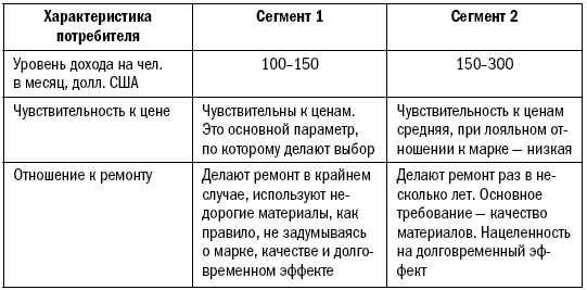 Еще один сегмент он выделил как покупателей, обладающих достаточными доходами, чтобы выбирать отделочные материалы исходя из их качества, практически не обращая внимания на цену.