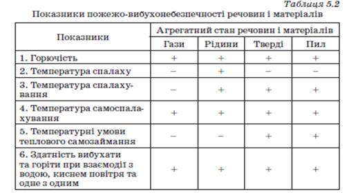 У ГОСТі 12.1.044-89* «Пожаро-взрывоопасность веществ и материалов. Номенклатура показателей и методы их определения» наведено 20 показників, перелік яких при необхідності може бути розширений. Вибір показників для характеристики пожежо-вибухонебезпечності тих чи інших речовин і матеріалів залежить від агрегатного
