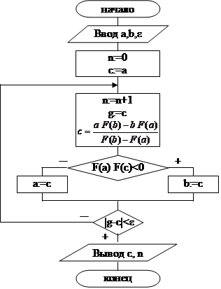 | Блок-схема метода хорд: | Результаты выполнения программы: |