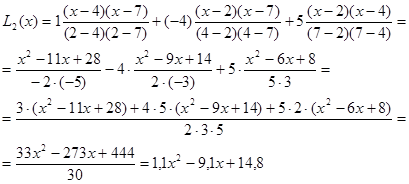 Составим интерполяционный многочлен Лагранжа для трех точек: