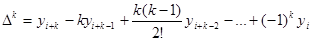 – конечные разности 2-го порядка – разности между конечными разностями 1-го порядка.