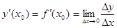 Значение производной функции y=f(x) в точке x0 получим, рассматривая последовательность