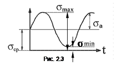 Детали машин обычно подвергаются действию напряжений, циклически меняющихся во времени. При этом возникают микроскопические трещины, приводящие к усталостной поломке деталей. В общем виде кривая, характеризующая изменение напряжений во времени, представлена на рис. 2.3.