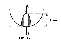 В результате приложения нагрузки в месте контакта возникает площадка в виде круга (рис. 3.9).