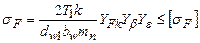 Условие прочности для изгибных напряжений в косозубом колесе запишется