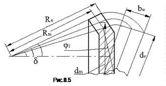Внешнее конусное расстояние Re определяет габариты передачи (рис. 8.1).