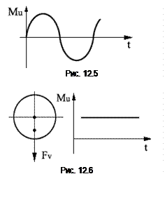Возможен случай, когда нагрузка от неуравновешенных сил (центробежная сила Fц) вращается вместе с валом (рис.12.6). Такая нагрузка создает в каждой точке вала постоянные по знаку напряжения. Могут встретиться самые разнообразные случаи нагружения. В реальных условиях даже при постоянном режиме Ткр изменяется