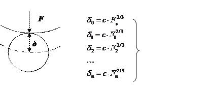 С другой стороны по Герцу-Беляеву d = c F 2/3, где c – const, (рис.14.9) тогда