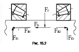 Рассмотрим схематично вал, нагруженный радиальной силой Fr и осевойнагрузкой FА (рис. 15.2). Условие равновесия вала