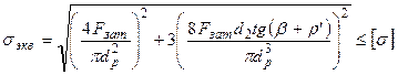 Прочность болта определяют по эквивалентному напряжению (энергетическая теория)