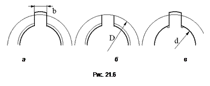 Соединение с прямобочными зубьями выполняют с центрированием по боковым граням (рис. 21.6, а) зубьев, по наружному (рис. 21.6, б) или внутреннему (рис. 21.6, в) диаметру вала.