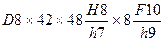 Условное обозначение соединения с прямобочными зубьями в соответствии с ГОСТ 1139-80 должно содержать: букву, обозначающую поверхность центрирования, число зубьев z и номинальные размеры d, D, b соединения; обозначения посадок диаметра и размера b, помещенные после соответствующих размеров. Например, при z =8, d =42, D =48, b =8 обозначение соединения с прямобочными зубьями с центрированием по наружному, с посадкой по диаметру центрирования