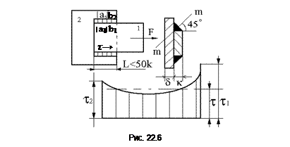 Основными являются касательные напряжения t в плоскости стыка деталей и нормальные напряжения s в перпендикулярной плоскости. В инженерной практике лобовые швы рассчитывают только по касательным напряжениям. За расчетное сечение также принимают сечение m-m, что подтверждается экспериментально.