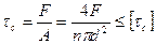 где F – срезывающая сила в плоскости стыка; А – суммарная площадь поперечного сечения и заклепок с диаметром стержня d;