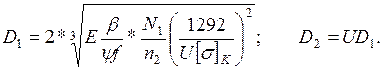 Поскольку всё это следствие высоких контактных напряжений сжатия, то в качестве проектировочного выполняется расчёт по допускаемым контактным напряжениям [29]. Здесь применяется формула Герца-Беляева, которая, собственно говоря, и была выведена для этого случая. Исходя из допускаемых контактных напряжений, свойств материала и передаваемой мощности определяются диаметры фрикционных колёс