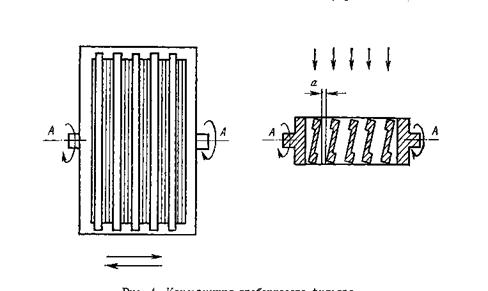Любой ГФ имеет определенную периодическую или апериодическую структуру. Наиболее распространен «пропеллер» с принципом динамического формир-ния, но тогда на современном этапе было бы более разумно вообще перейти к сканированию пучка. Пропеллер приводится в быстрое вращение, что, как и сканирование, не применимо на данном импульсном пучке, требует програм. управления и многих предосторожностей, связанных со специальным разгоном, переменным режимом вращения и торможением фильтра.Но неравномерность дозного поля может устраняться и более простыми способами: подвижкой фильтра или уменьшением шага намотки элементов фильтра при его выполнении в виде спиральной ленты из пластического материала. Пластинчатый ГФ также обычно приводился в движение, со смещением на полушаг. Можно и совсем не перемещать, а выбрать достаточно большое расстояние от мишени (100 см). Для гомогенизации поля пучок рассеивался на расстояние шага фильтра.