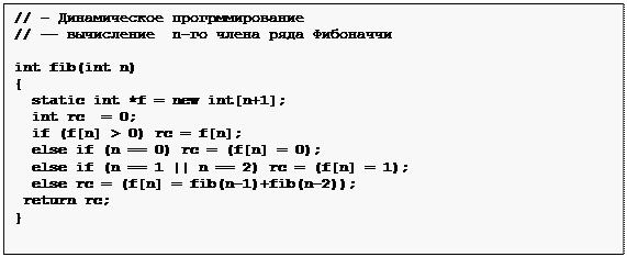 На рис. 1 приведен пример реализации алгоритма вычисления члена последовательности Фибоначчи методом динамического программирования.