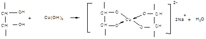 2. Средние по силе кислоты многоатомные спирты взаимодействуют с гидорксидом меди (II), с образованием хелатного комплекса.