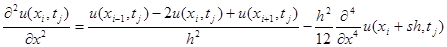 Вторую производную по x в (3) будем аппроксимировать разностным соотношением на основании равенства: