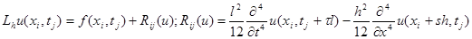 Разностное уравнение (6) имеет второй порядок погрешности аппроксимации по l и по h: